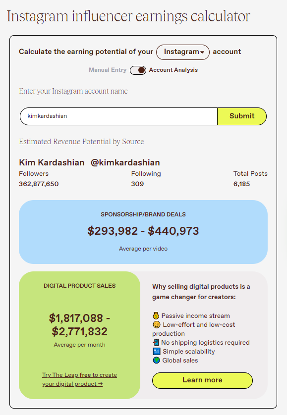 TheLeap - Social Media Calculator Widget